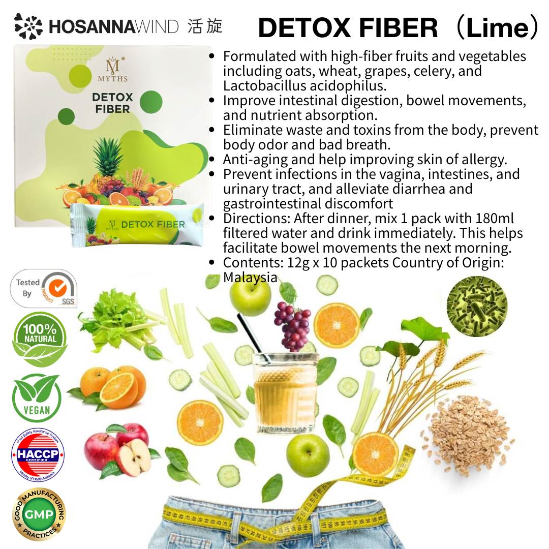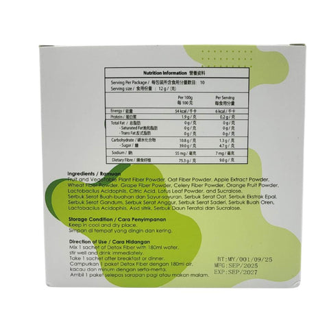 Detox Fiber is a high-tech blend of fruits and vegetables, oats and probiotics which improves digestive function, facilitates bowel movement and nutrient absorption. Besides, it rapidly removes waste, toxins and harmful substances in the body, reduces the chance of toxins being reabsorbed into the bloodstream through the intestines, thus smoothing the blood flow, provides strong anti-aging effects, enhances the vitality of skin cells, improves the sensitive body constitution and acne, restores smooth skin and lightens pigmentation, so that the skin will be back to shinny and healthy!