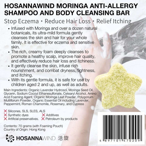 HOSANNAWIND MORINGA HERBAL SHAMPOO AND CLEANSING BAR (FIT FOR SENSITIVE SKIN AND ECZEMA)
