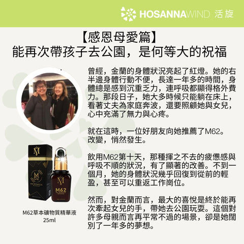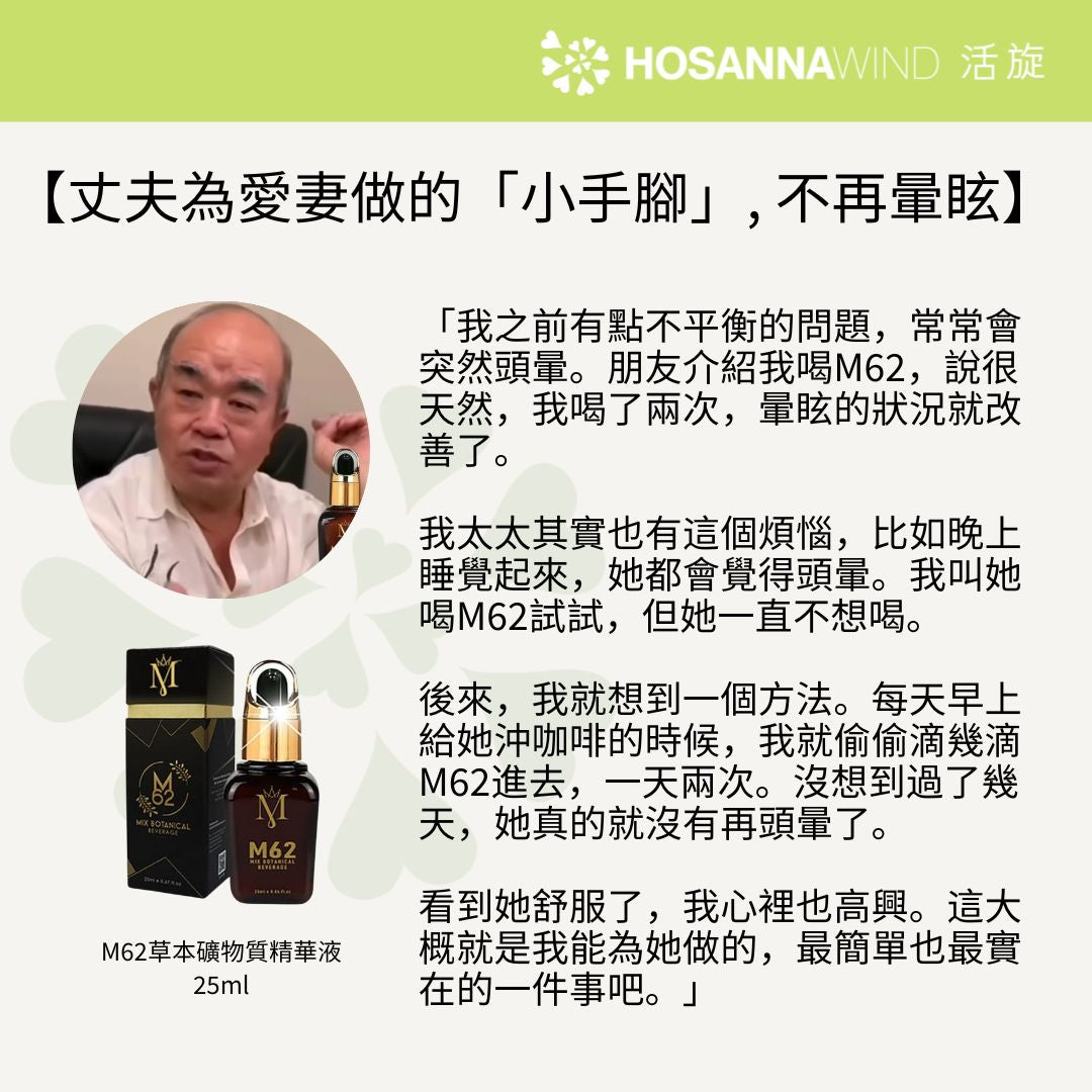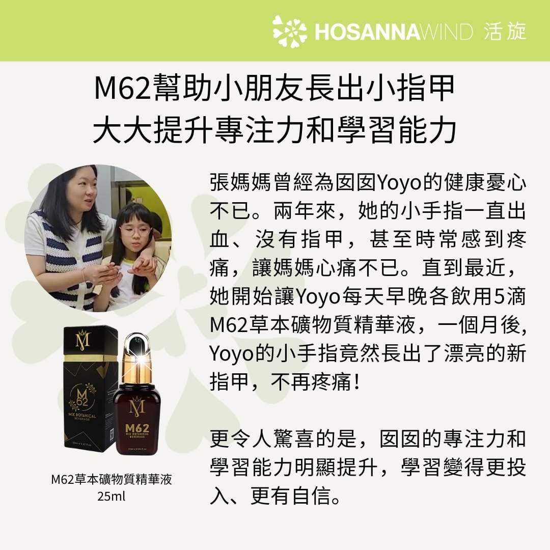 M62 Mix Botanical Beverage is convenient to carry around at any time and place. Just take 5 drops every morning and evening to achieve the desired effect. M62 is a perfect gift for family, friends and the elderly!